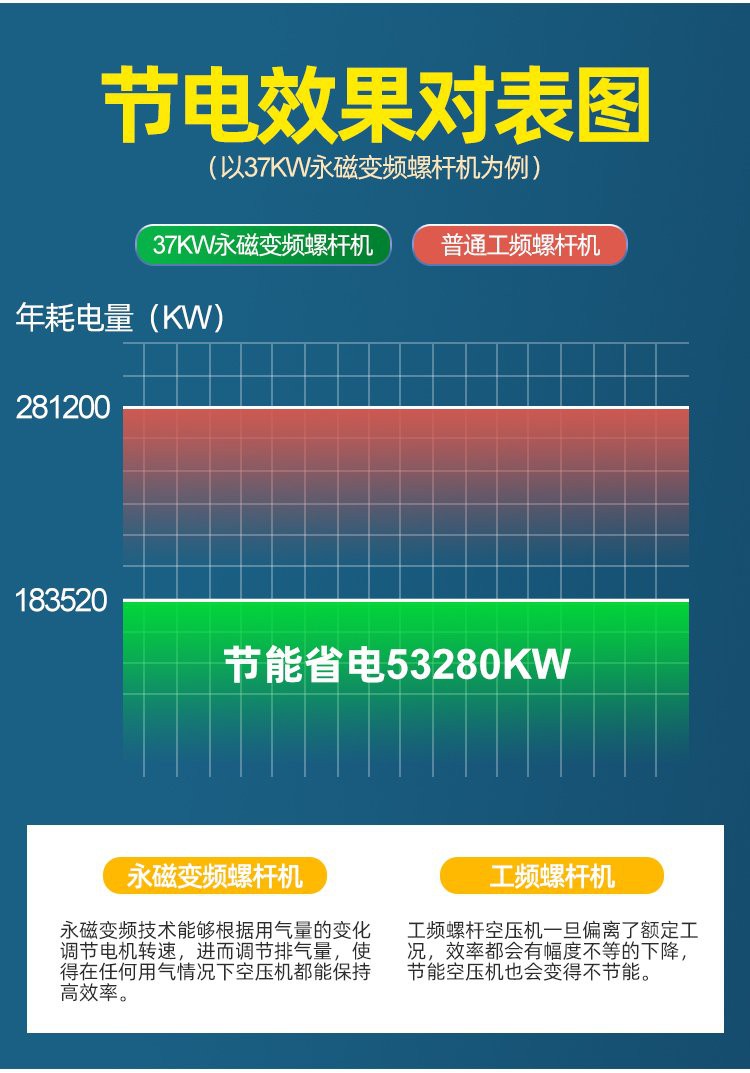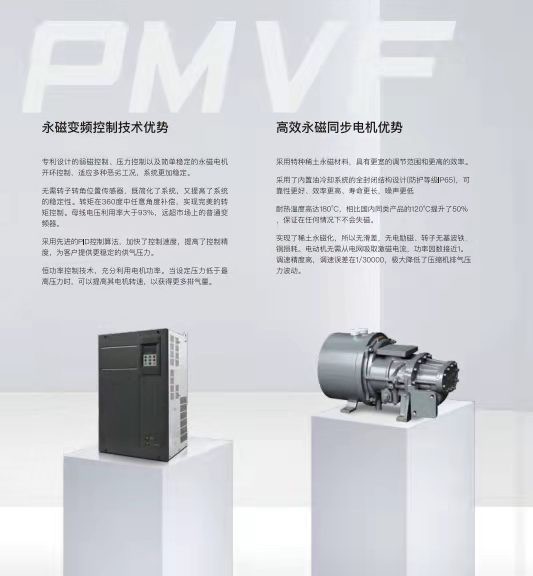 是国内螺杆压缩机行业中唯一实现螺杆主机、同步电机、永磁控制电控同步设计,并且实现完美配合等优点。