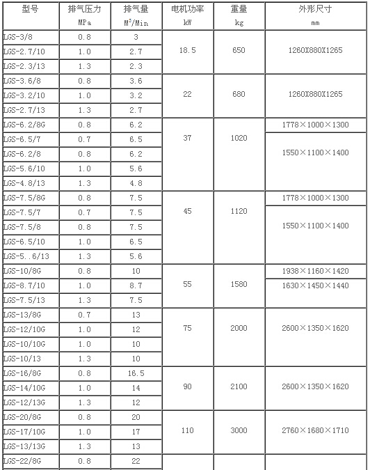 电动水冷固定式螺杆空气压缩机技术参数 |