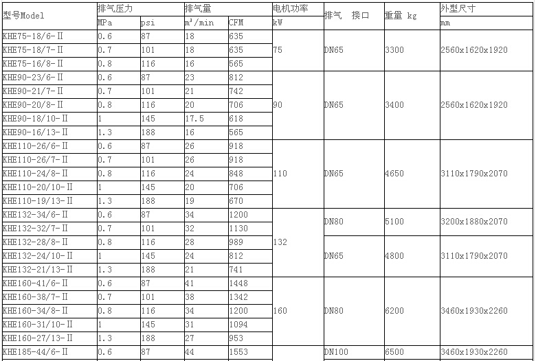 国内首创,两级压缩常压螺杆空气压缩机。 排气压力:0.6-1.3Mpa,排气量:16.00 -70.00m3/min,电机功率范围:75-355 kW